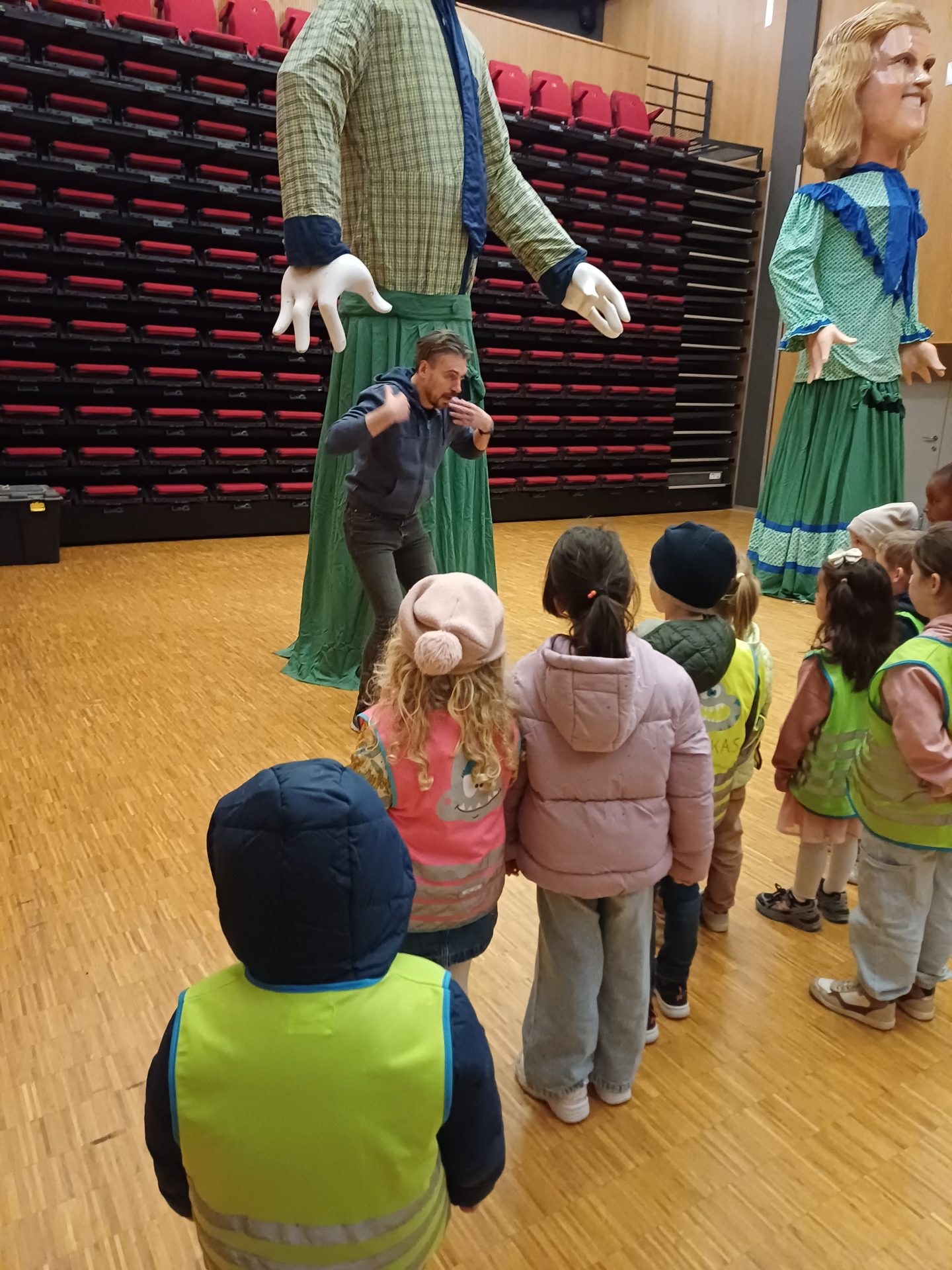 Na ons bezoek aan de kermis mochten we ook eens langs gaan bij de reuzen. Zo kwamen we hun namen te weten: Pomperwat, Rollebolle en Reuze Guy. We kwamen ook tot de ontdekking dat er zondag een nieuwe reus ging meelopen, maar hoe en wat mochten we nog niet weten.