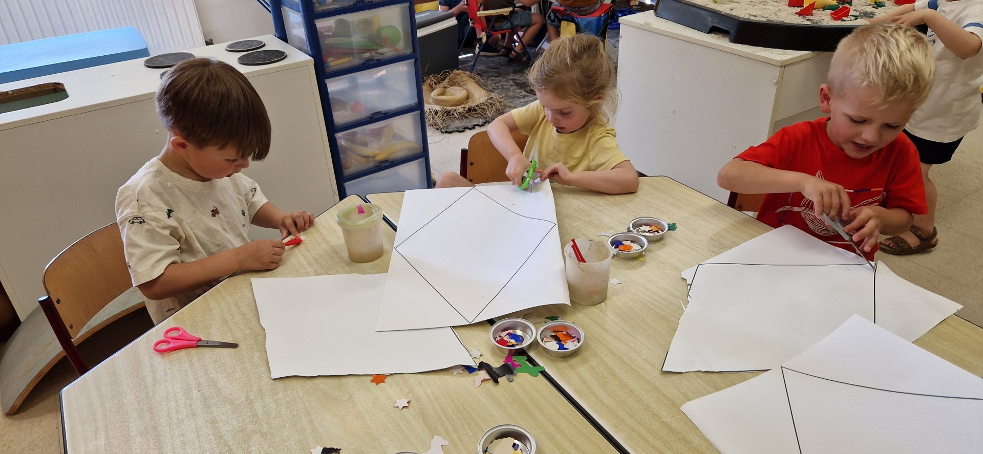 - Maken van een vakantie vlieger (technieken: prikken, kleven, patroon, stempelen,…)