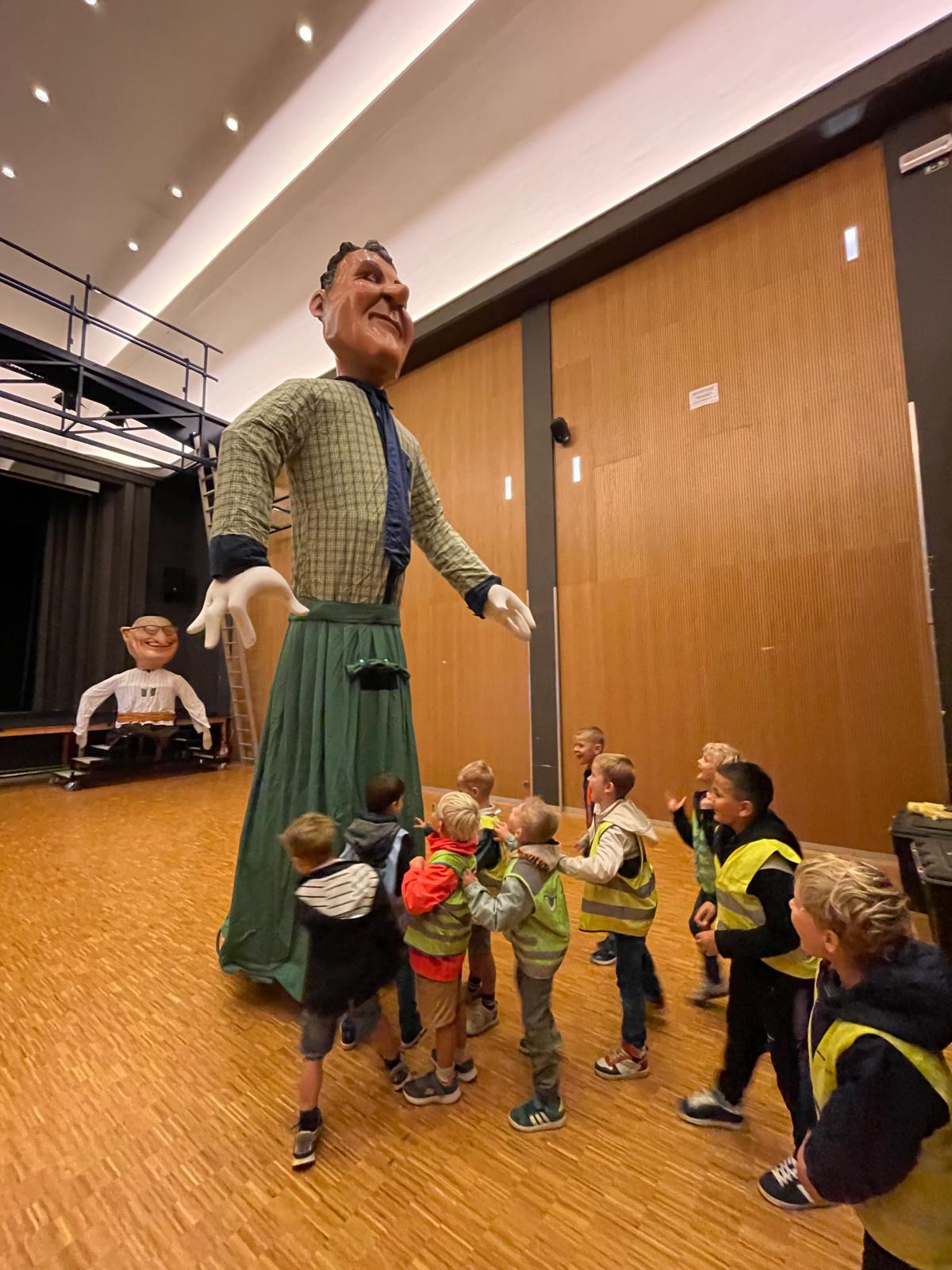 Wat leuk om de reuzen van heel dichtbij te zien. Rollebolle, Pomperwat en reuzeke Guy zijn er klaar voor. En morgen komt er een nieuwe reus. De broer van Pomperwat… benieuwd! Daarna gingen we zelf aan het werk en tekenden we onze lievelingsreus. Echte artiesten.