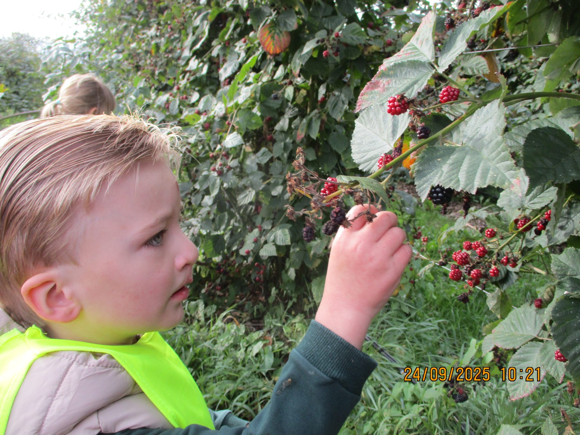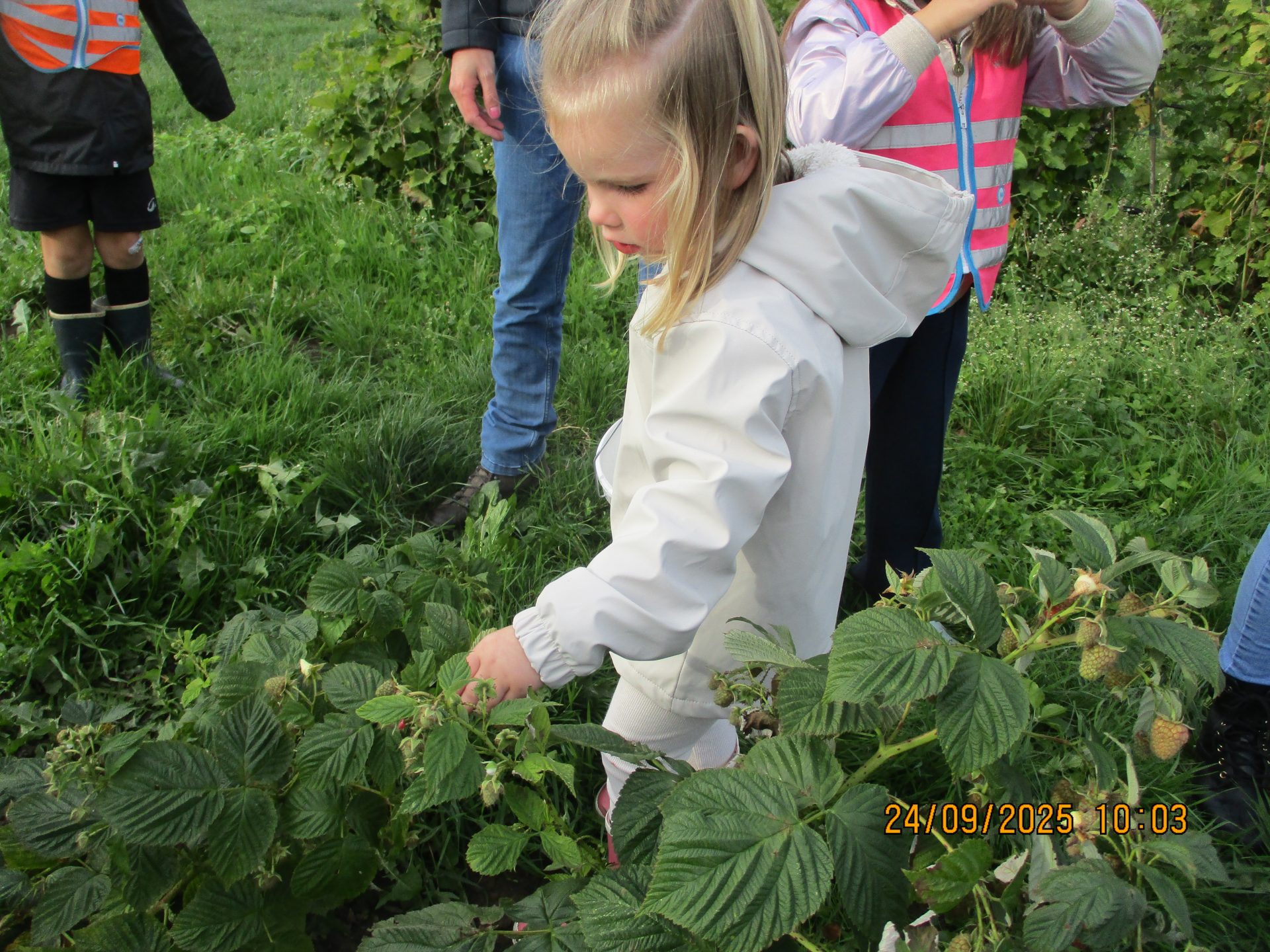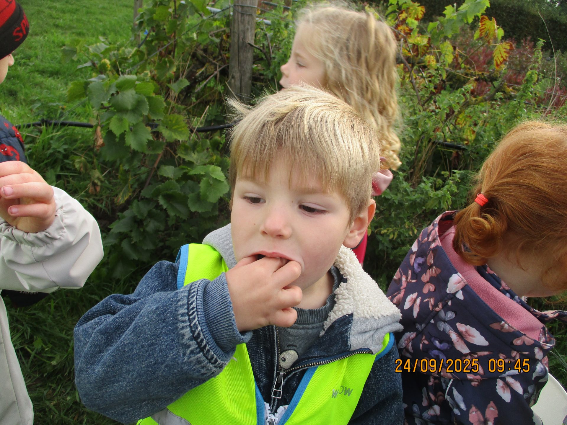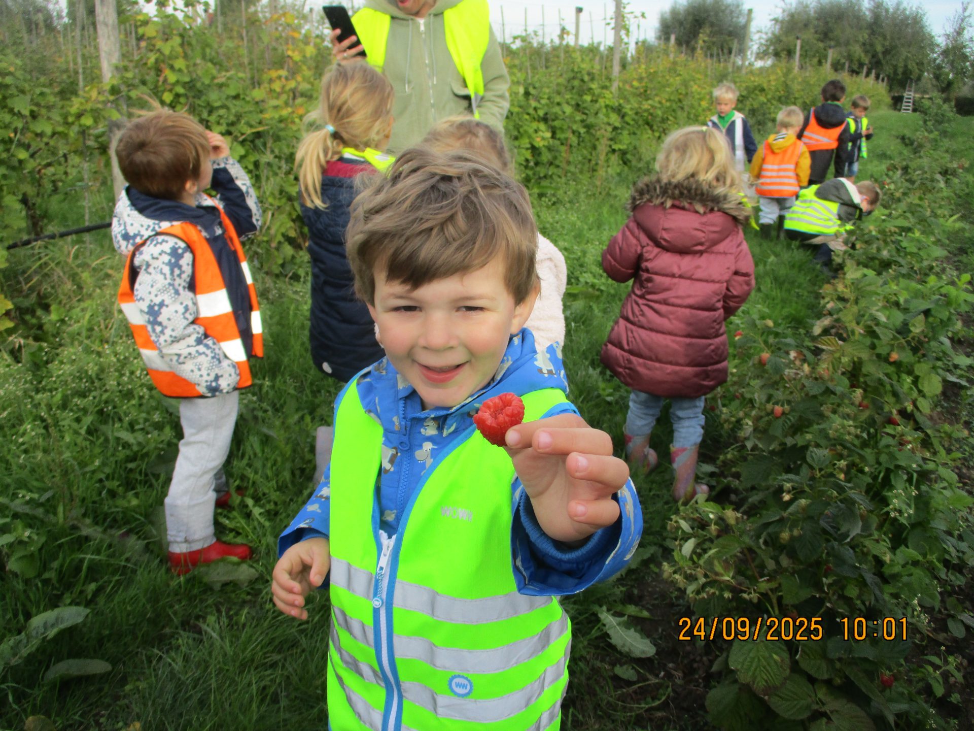 Geniet van ons bezoek aan de pluktuin. De kleuters konden frambozen, druiven, kiwibessen proeven.