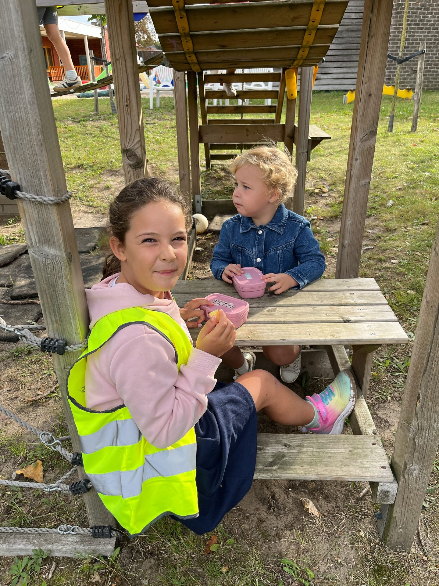 Woensdag 10 september – Vandaag gingen we samen met de klas van juf Kim te voet naar de wijkschool. We brachten een bezoekje aan de klassen, we aten ons fruit en toen mochten we vrij spelen. We hebben er echt van genoten. Het was prachtig weer!