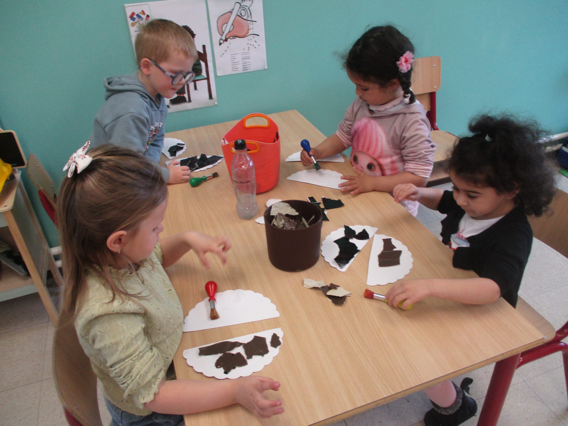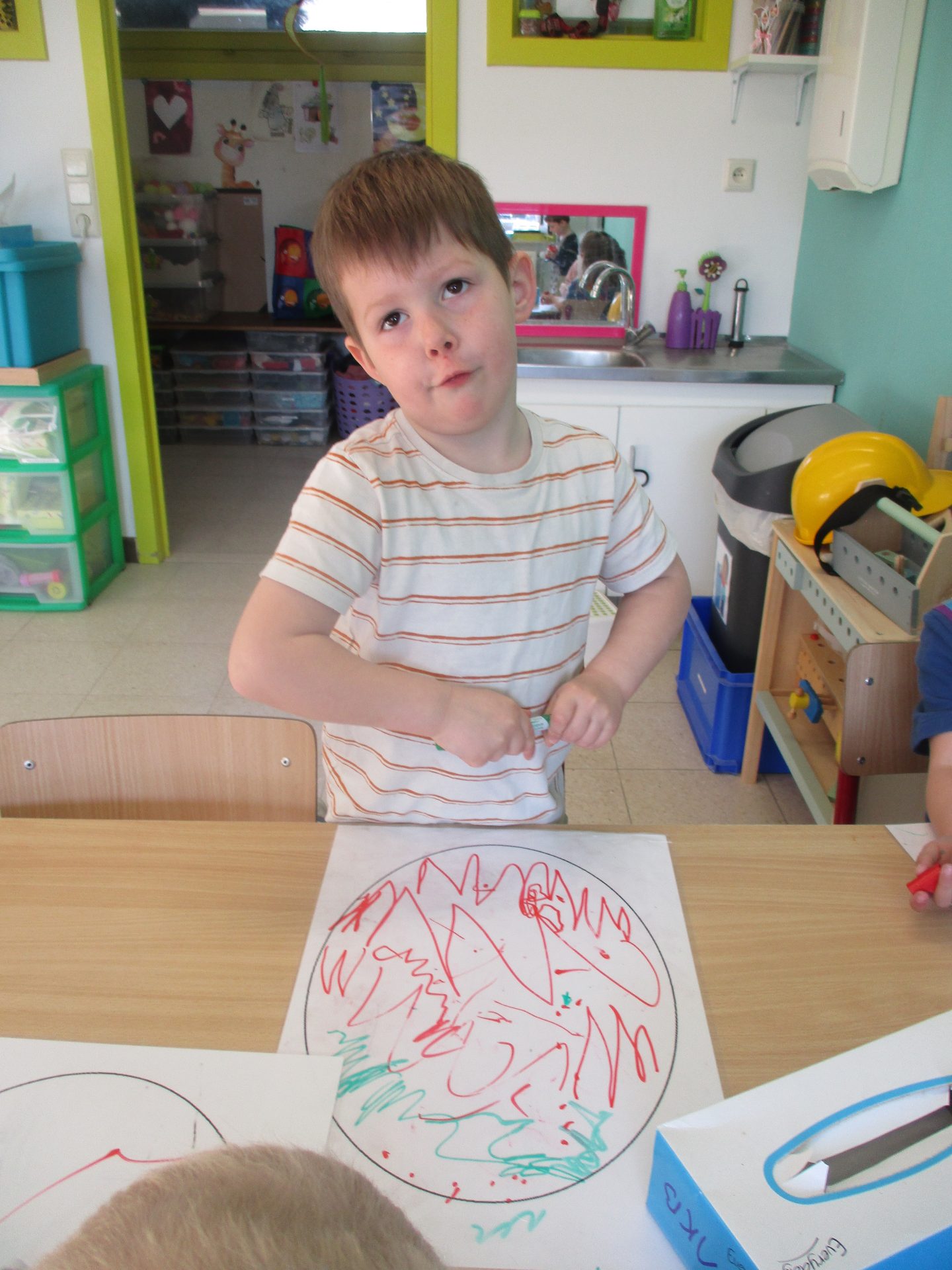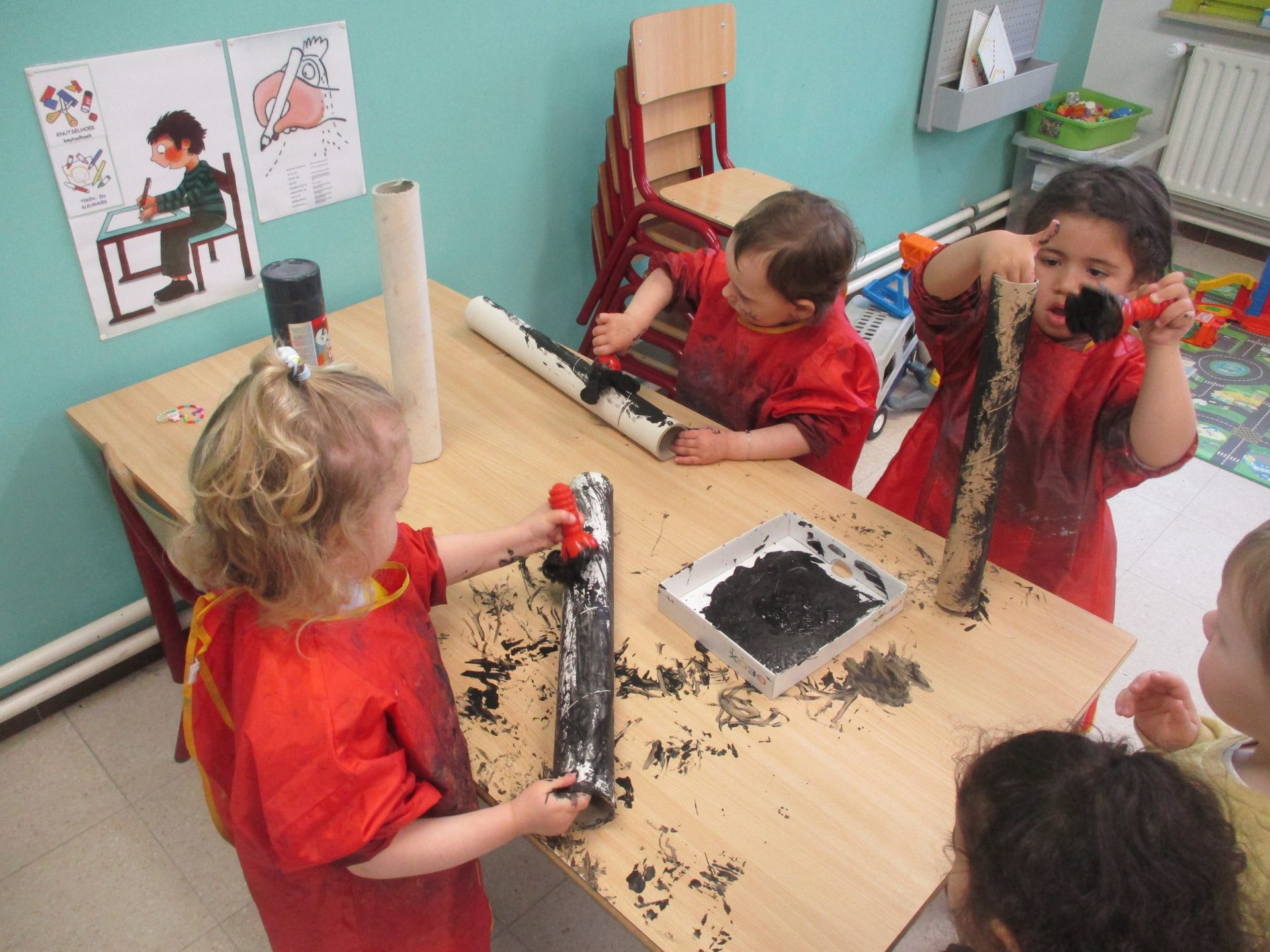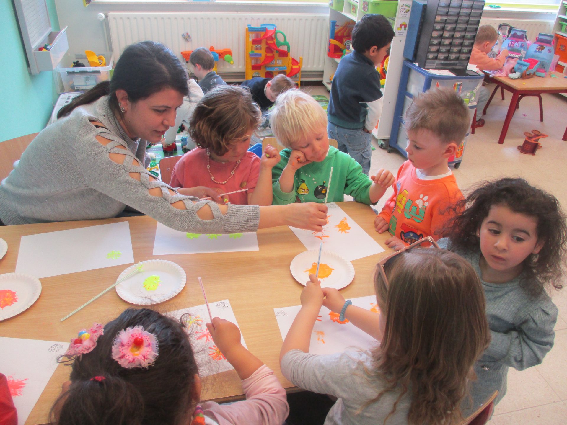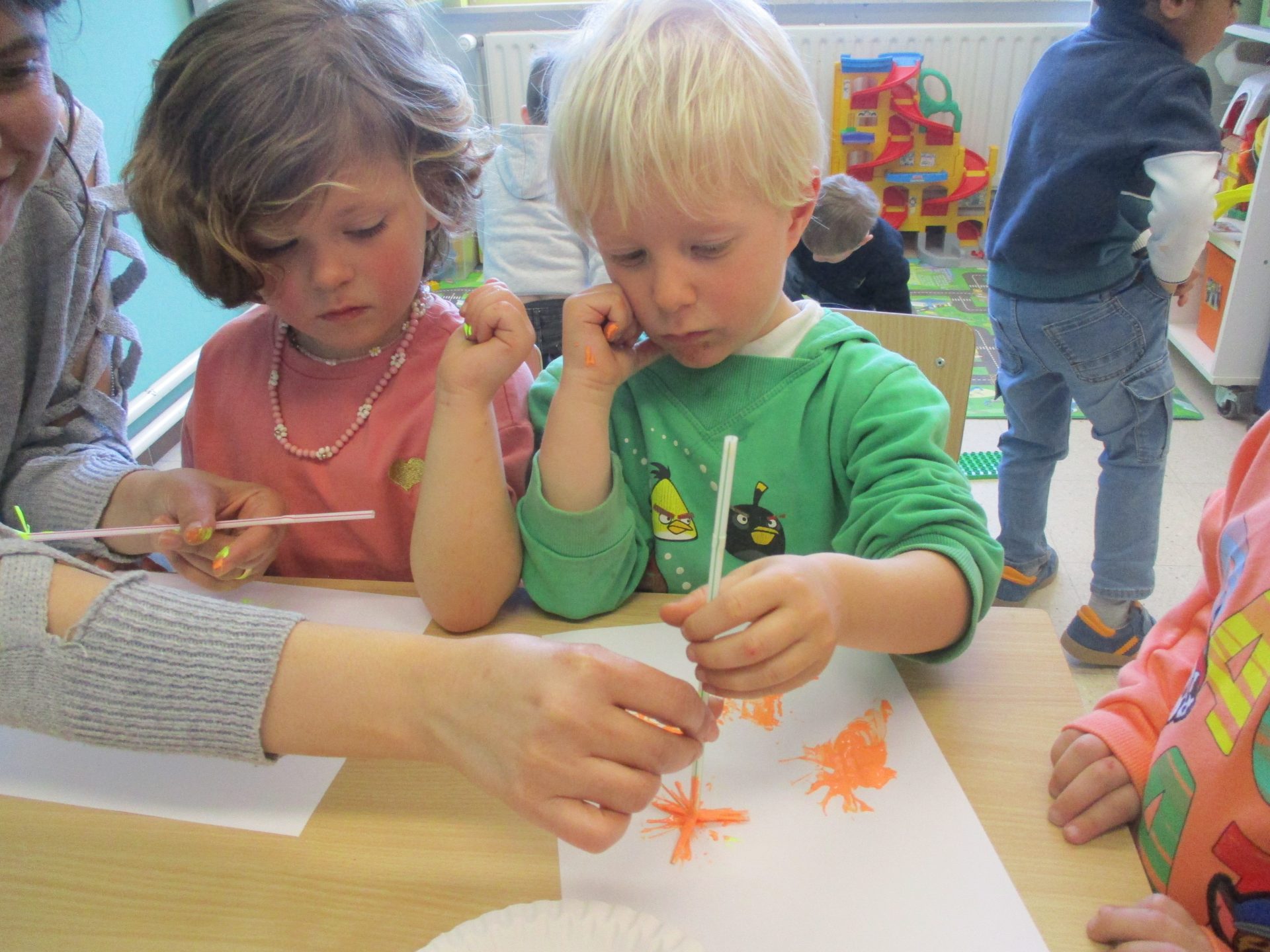 - Bloemen stempelen: Opdracht van de kinderverzorgster (Elke donderdag komt ze stage lopen op de hoofdschool).