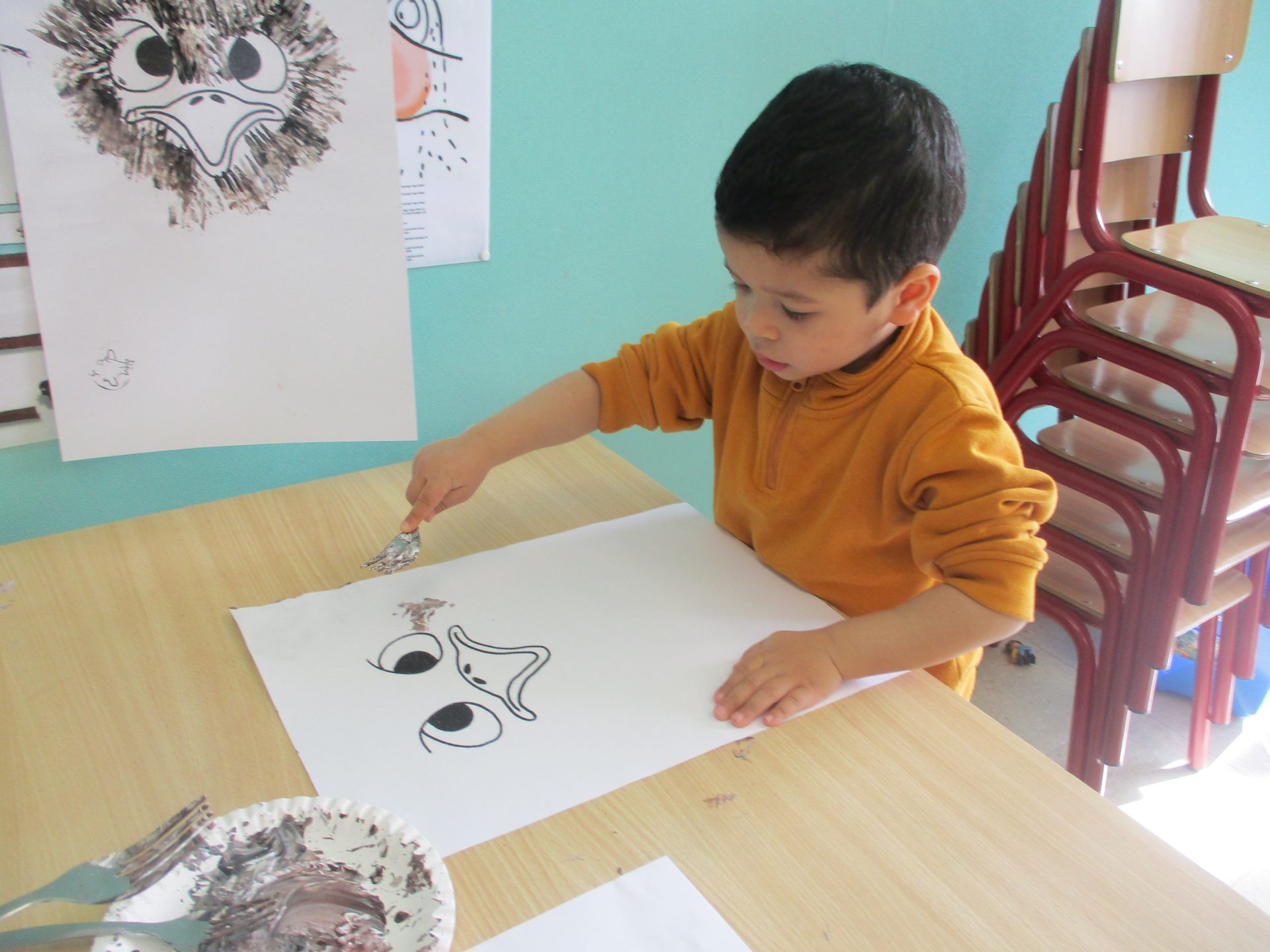 - Struisvogel paasmandje knutselen (stempelen met een vork, knippen, scheuren, kleven en schilderen)