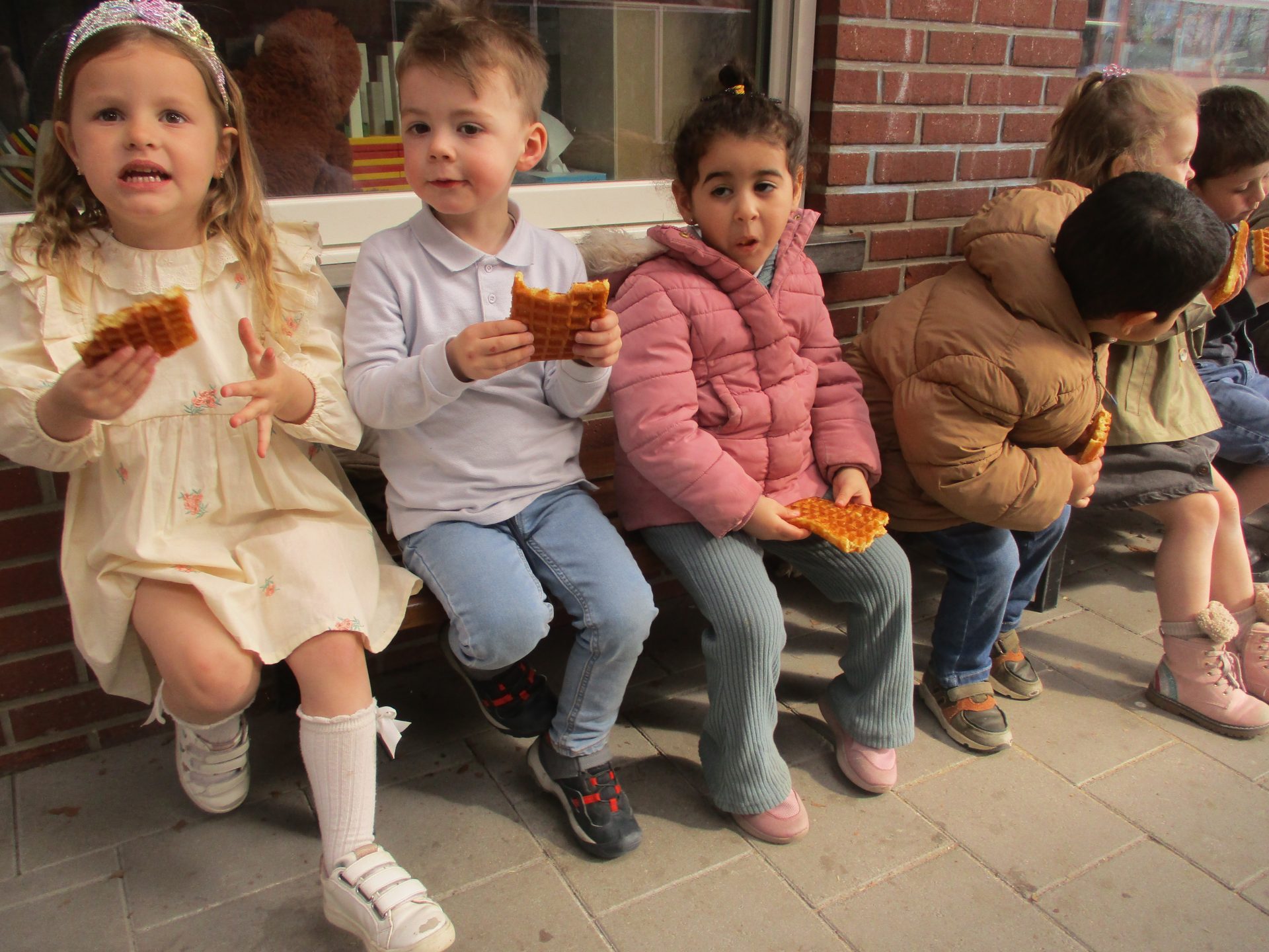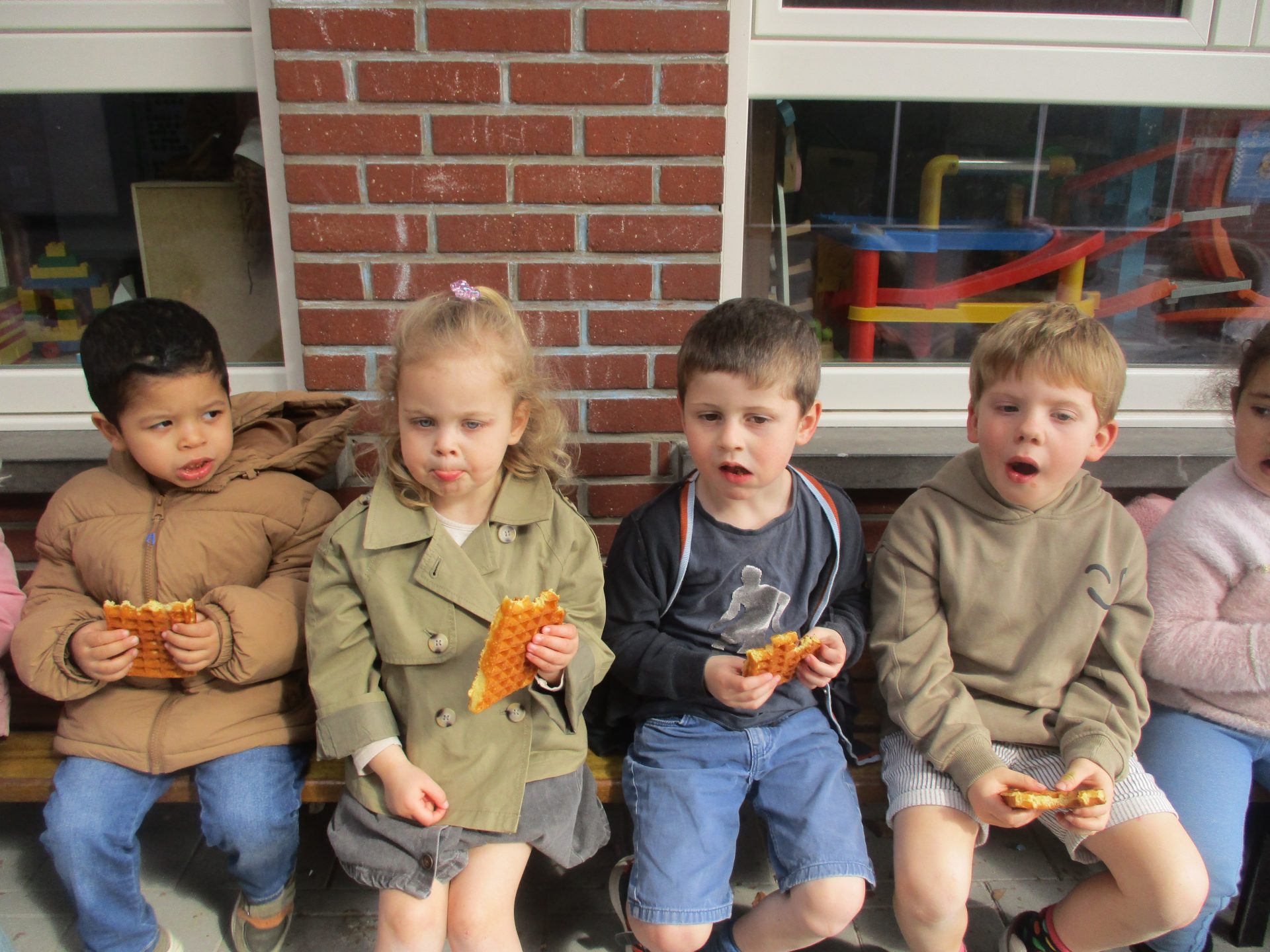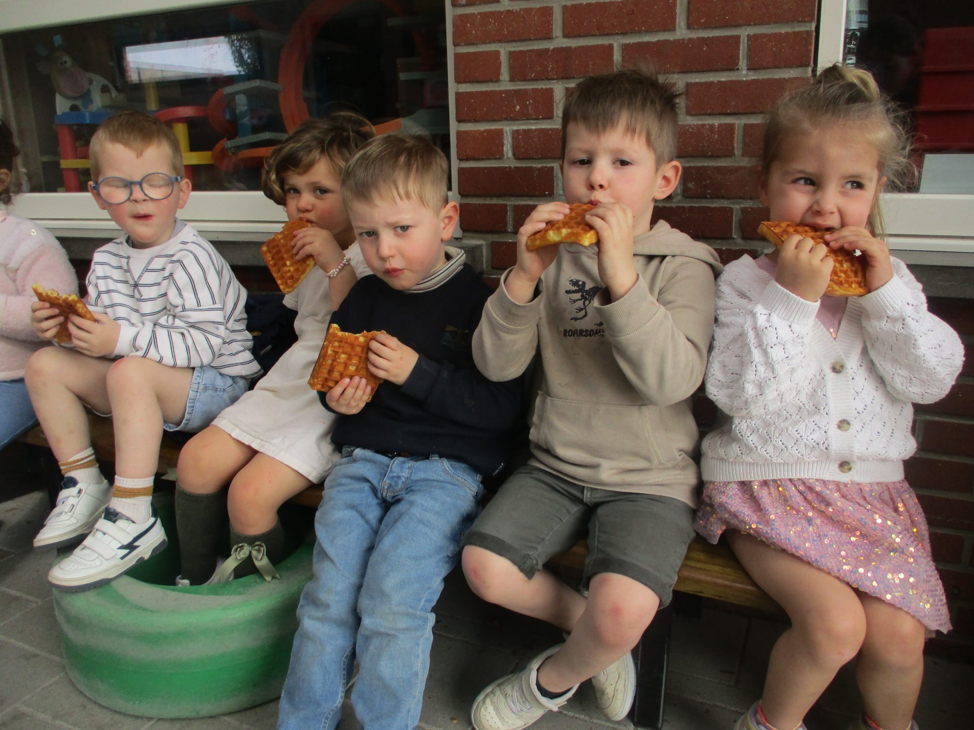 - De juf was jarig en trakteerde aan de kindjes van de klas, genieten van lekkere wafels…