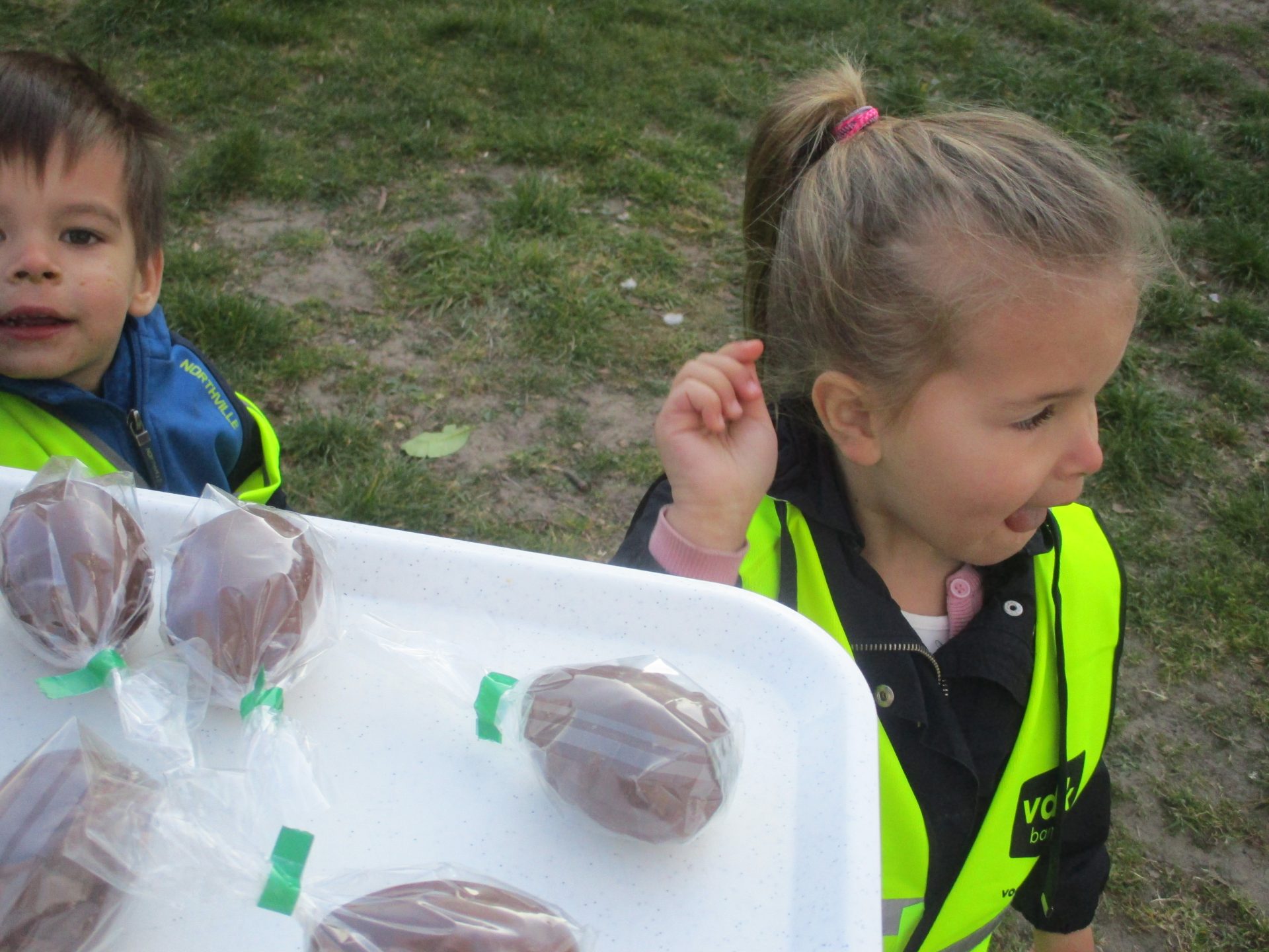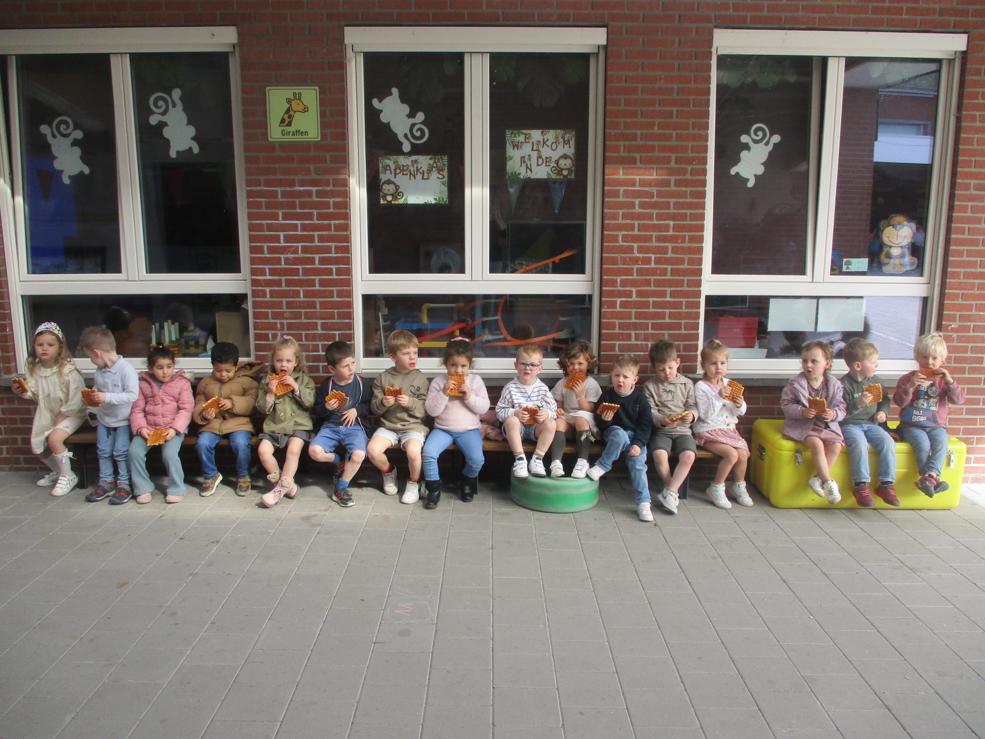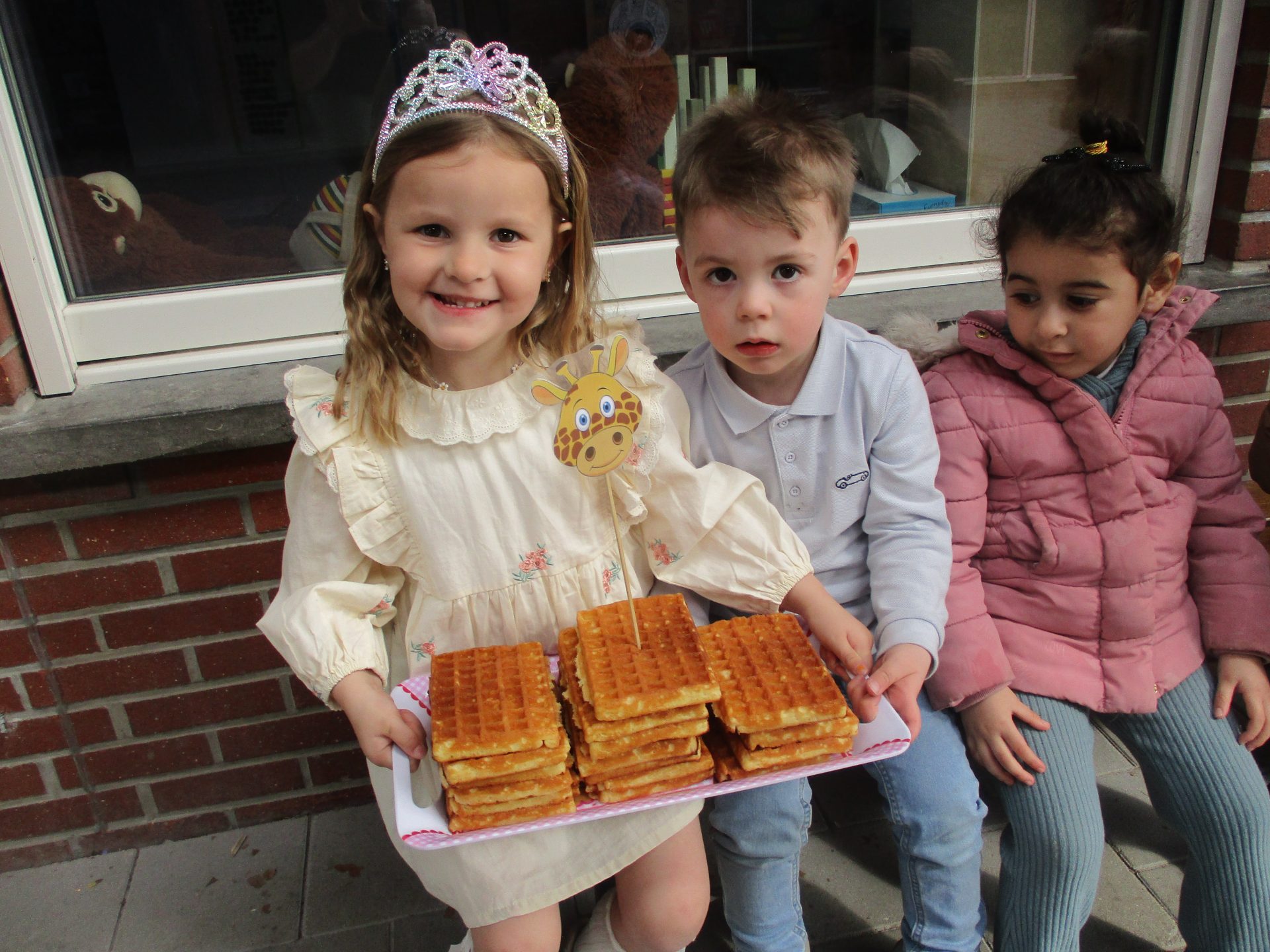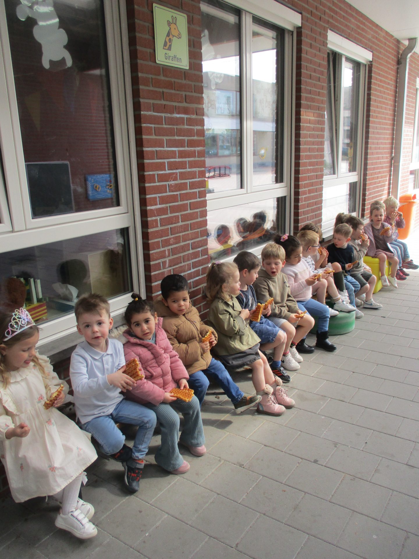 - De juf was jarig en trakteerde aan de kindjes van de klas, genieten van lekkere wafels…