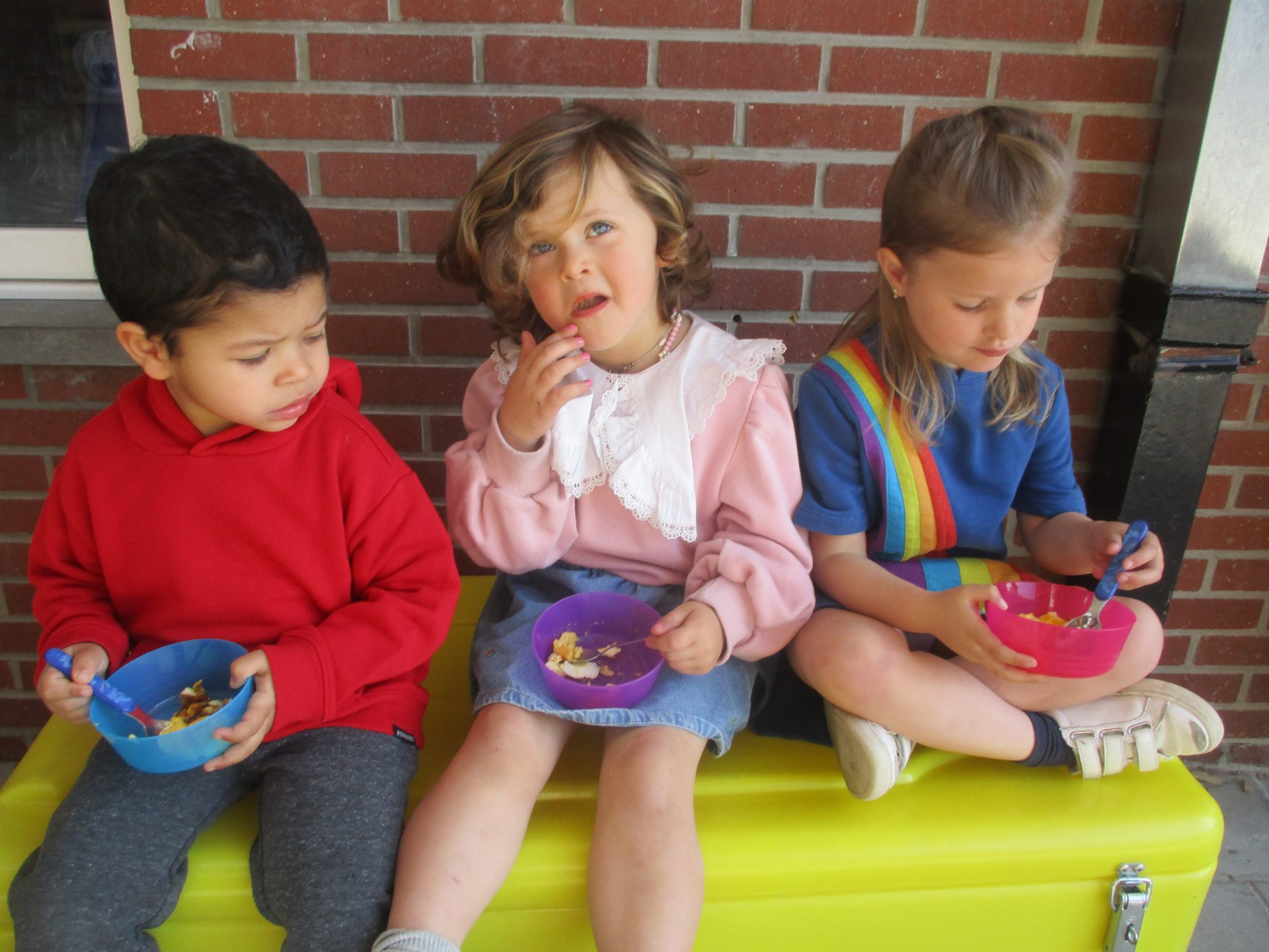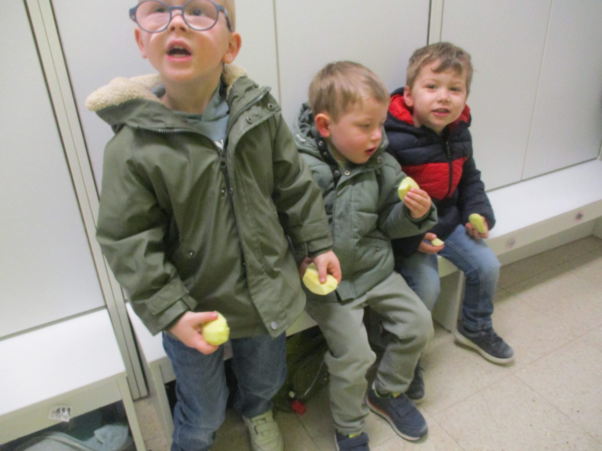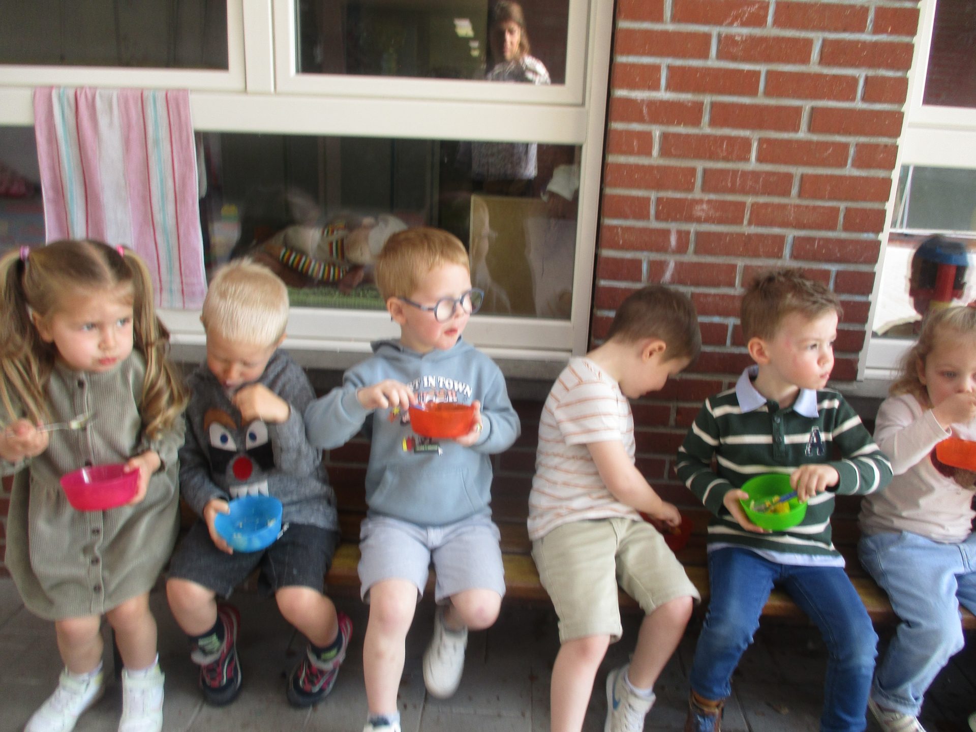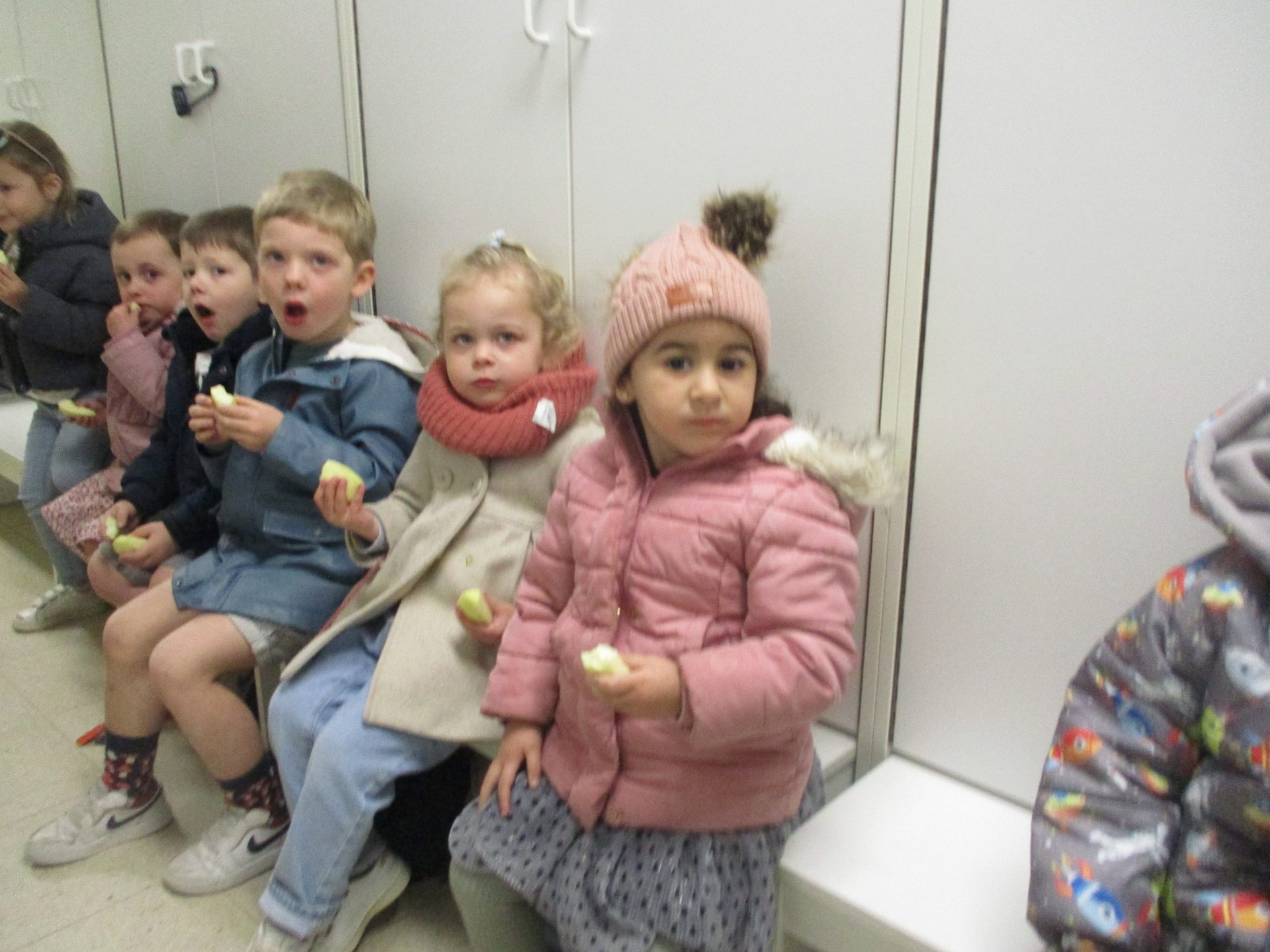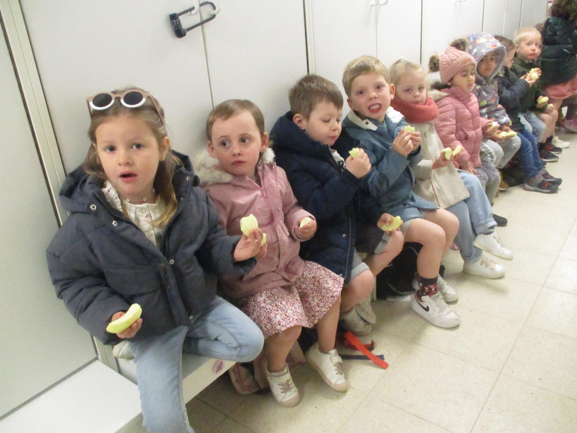 - Elke woensdag krijgen we en gezond tussendoortje (fruit/ groeten) van de ouderraad, telkens doen alle kleuters hun best om te proeven.
