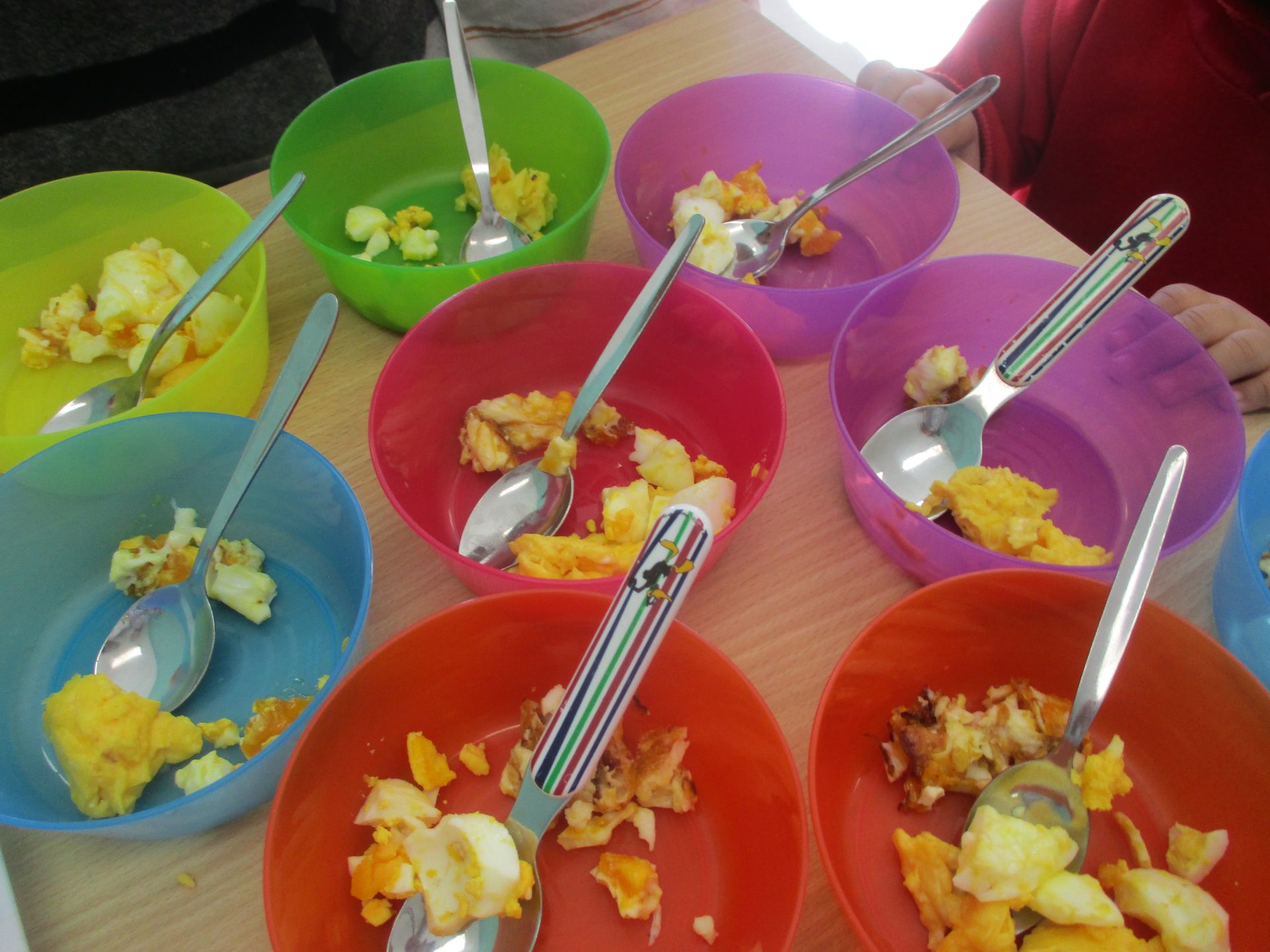- Kookactiviteit met eitjes: Verschillende eitjes klaarmaken en proeven
